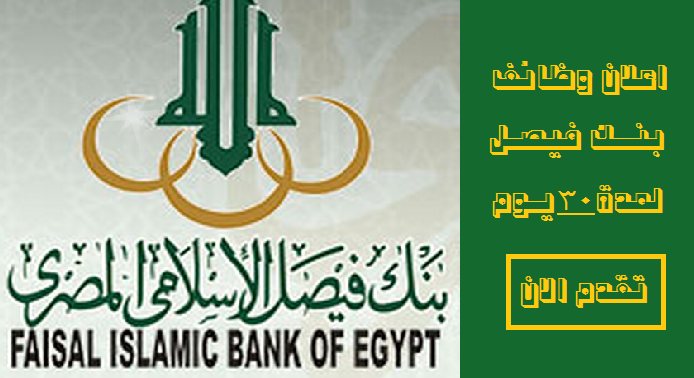 بنك فيصل الاسلامى المصرى يعلن عن حاجته لشغل عدد من الوظائف الشاغرة وفقا للاعلان الرسمى التالى :