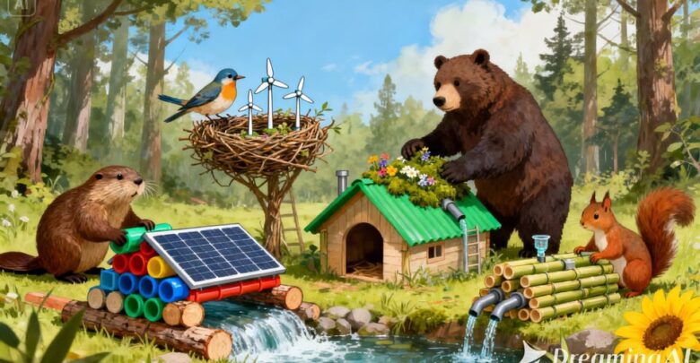 In the Whispering Woods, a wise tortoise named Terra gathers various animals to showcase their unique, eco-friendly homes. From the Beaver’s living dam to the Weaver Bird’s solar nest, each creature demonstrates innovative designs that promote sustainability and harmony with nature. Terra unveils a blueprint combining their techniques, illustrating how their homes contribute to a thriving ecosystem. Together, they embody the essence of nature’s architects.