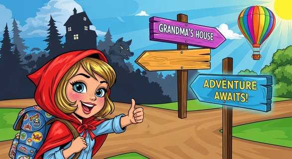- In this reimagined tale of Little Red Riding Hood, Ruby embarks on a journey to deliver a basket to her grandmother. Ignoring her mother’s warning, she chooses a winding path filled with magical encounters, including a grumpy badger and a singing bridge. Along the way, she helps others and receives gifts of friendship. When she arrives at her grandmother’s house, she finds joy and companionship instead of danger, transforming the forest and the Big Bad Wolf’s life through kindness and bravery.