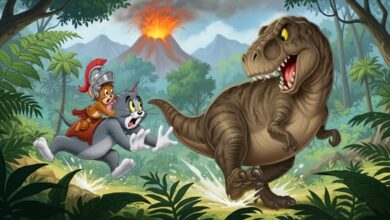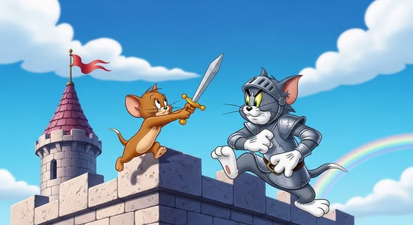 • Tom and Jerry accidentally tumble into a medieval world through a magical amulet. They embark on a quest to return the princess’s lost songbird, Pip, motivated by different desires: Tom seeks riches while Jerry aims to help. Their journey is filled with slapstick chaos, clever teamwork, and a showdown with a jealous jester. Ultimately, they choose kindness over wealth, returning Pip and earning the princess’s gratitude, before being magically transported back home.