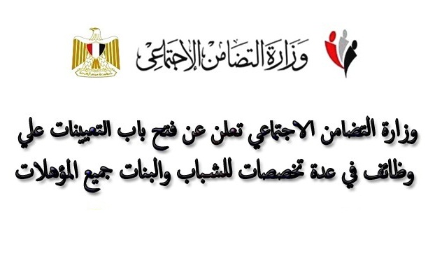وزارة التضامن الاجتماعى تعلن عن وظائف لجميع المؤهلات